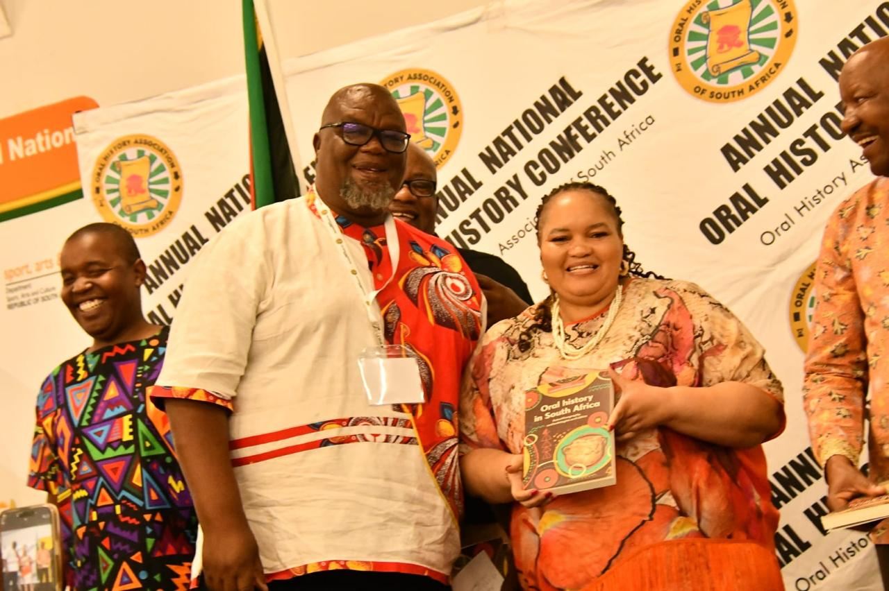 “Handover of OHASA Publications 2025” to the Deputy Minister, Hon Peace Mabe, MP, Dept Sport, Arts and Culture, and MEC Hon Jerry Maseko, MEC Limpopo Sport, Arts and Culture and other senior delegates:– “Oral history in South Africa: Autoethnography, methodologies and ethics” handed over by the Editor: Prof Sekgothe Mokgoatšana